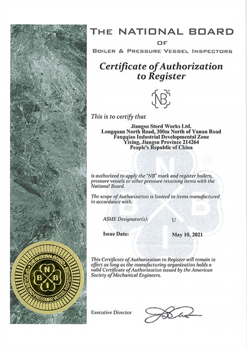 • 2021-06-21我公司收到美国ASME颁发的U钢印授权和NB认证证书